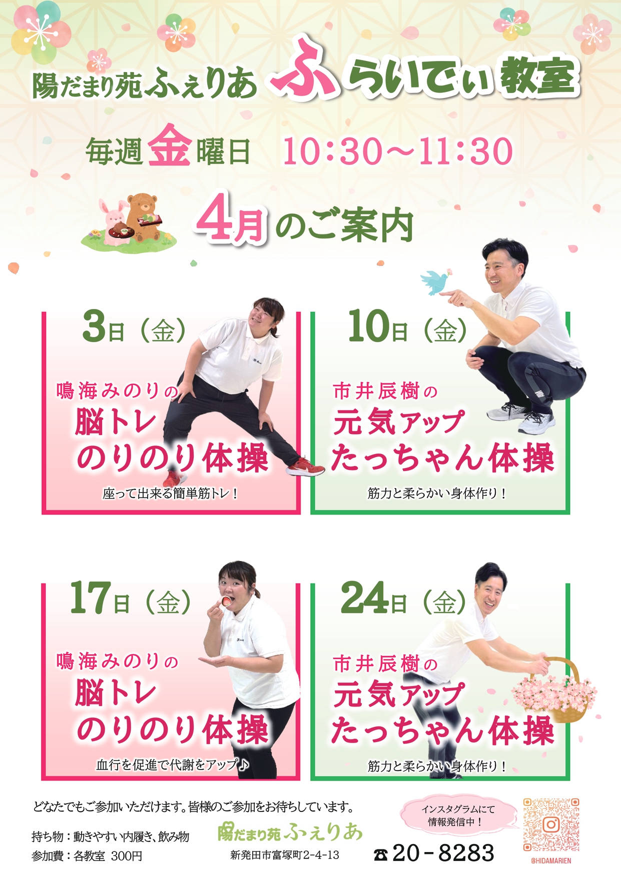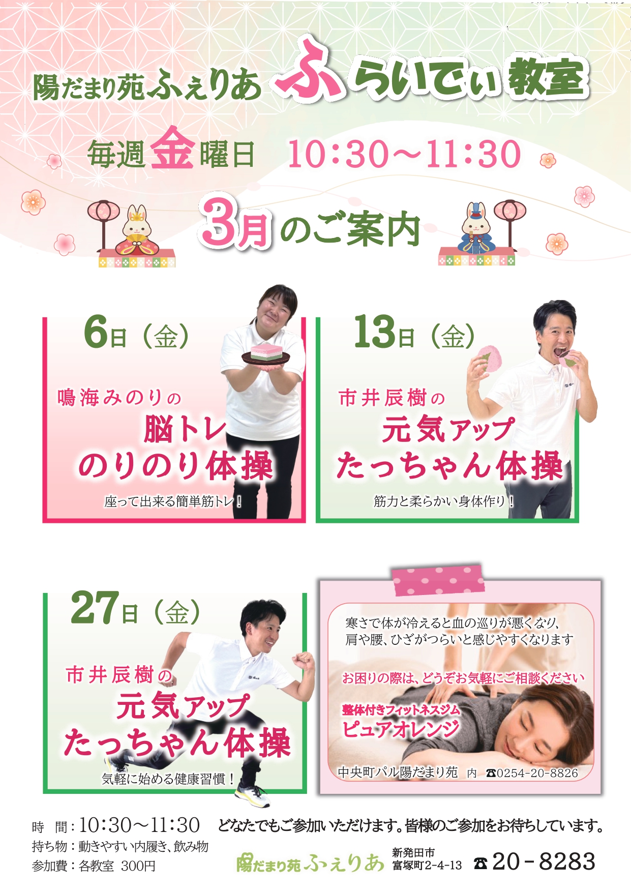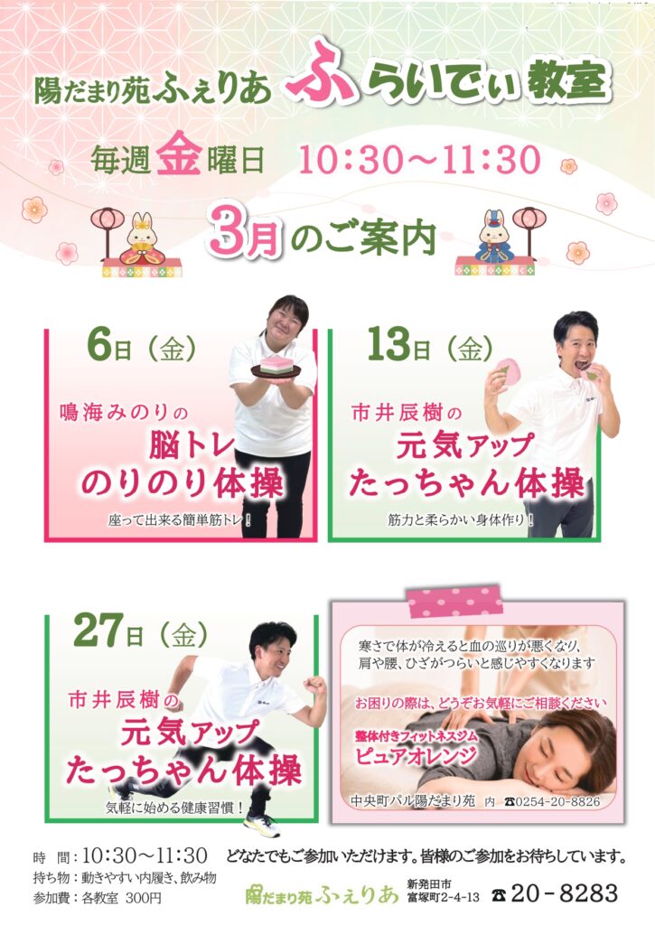 ふらいでぃ教室 令和8年3月・4月のお知らせです。