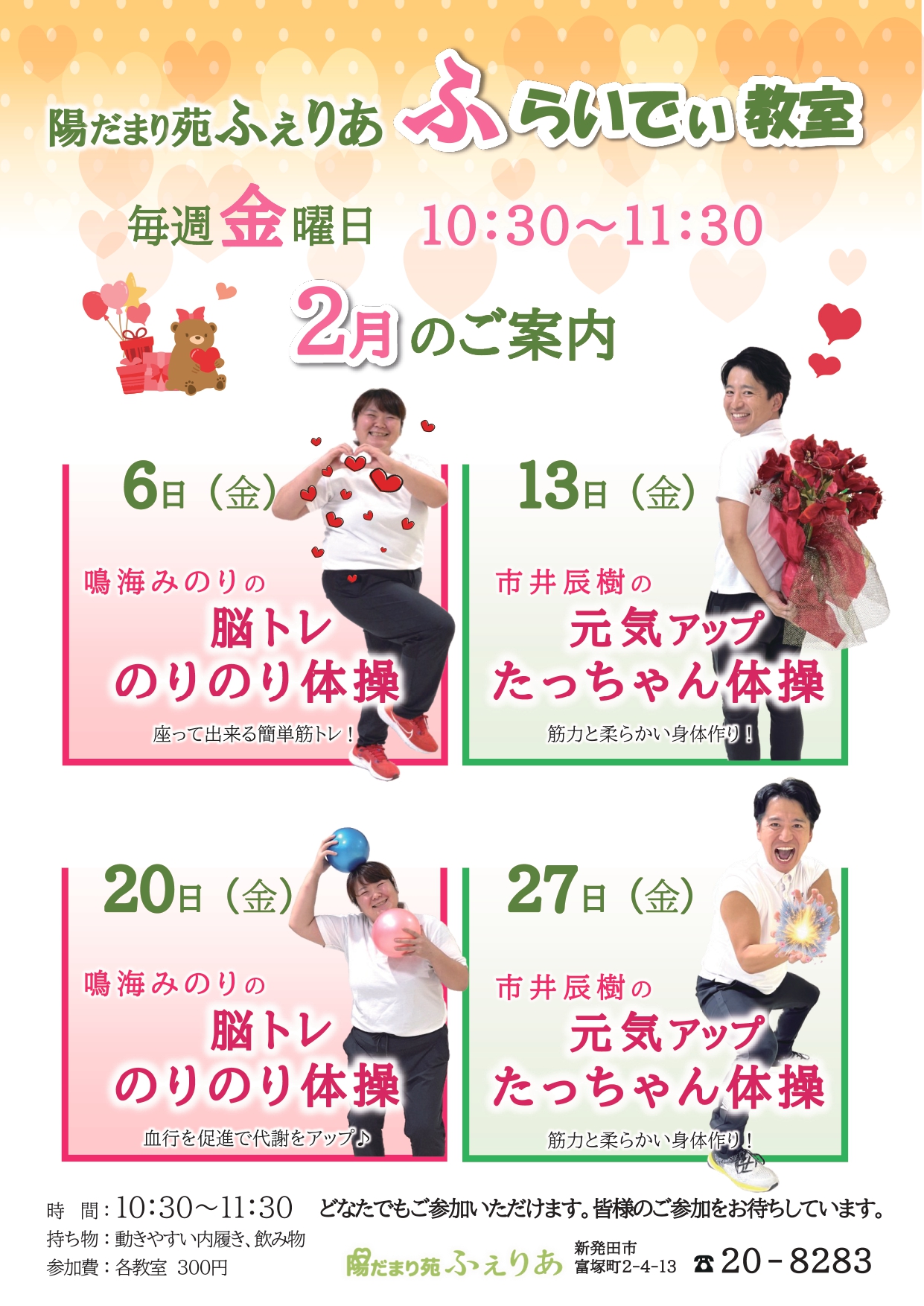 ふらいでぃ教室 令和8年1月・2月のお知らせです。